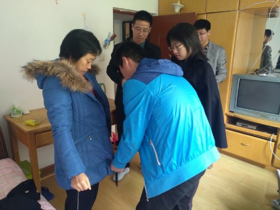 任潇首先代表基金会向吴步晨母子致以节日的慰问和祝福。她说,学校党委主要领导多次过问母子二人的生活状况,叮嘱基金会准备了抵御寒冬的“暖心棉衣”,今天来主要是送温暖和问候。她简要介绍了学校“困难不怕,哈工大是家”的资助体系,她表示,基金会会时刻践行学校党委“不让任何一名学生因家庭经济困难而辍学”的庄严承诺,下一步将在“爱心饭卡”“舒心车票”等项目中给予更多支持,希望吴步晨能够时刻以积极健康阳光的心态战胜暂时的困难。