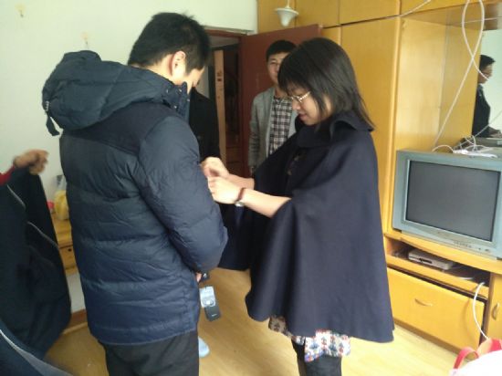 交谈结束后,学校和学院为母子二人送上了羽绒服、棉裤、月饼和水果等慰问品。
