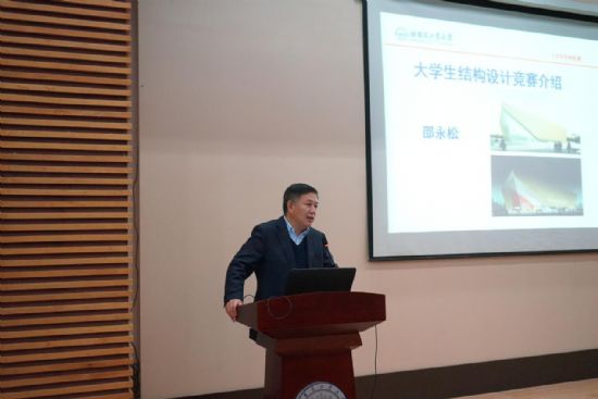 随后是本次启动仪式的第二部分——赛题解读。邵永松老师深入解读了历届国赛赛题,介绍了形式多样的题目,讲述了比赛时发生的一些小插曲,让同学们对结构竞赛有了初步的了解。科协策划部部长张曦蓓解读了本次校园结构竞赛的赛题,并详细介绍了比赛的流程。