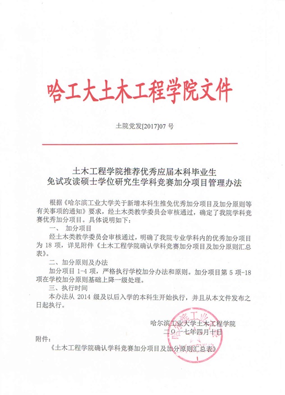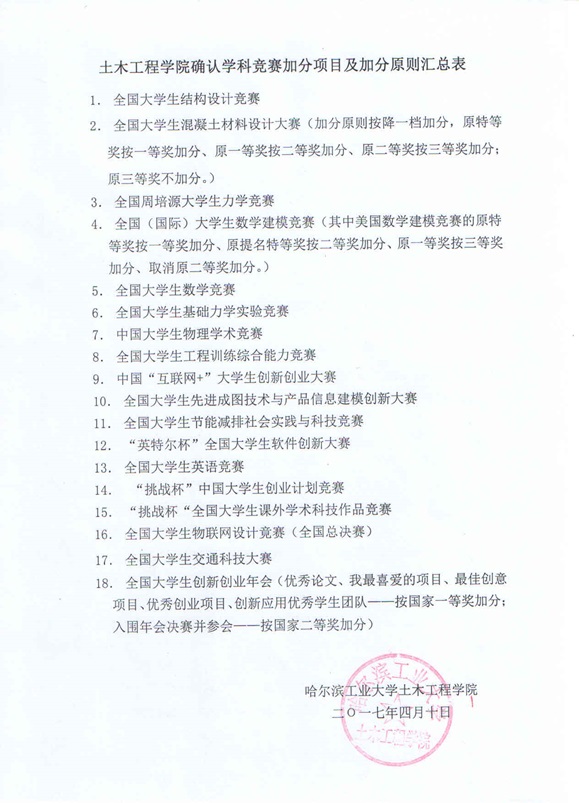 土木学院关于本科生推免科技竞赛优秀加分项目及加分原则20170412