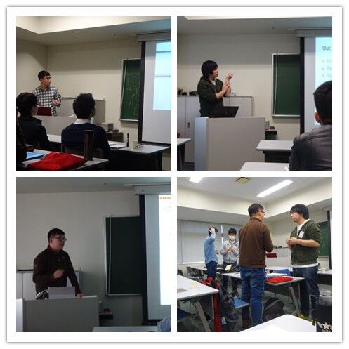 下午,来自东北大学和哈工大两方的学生就各自的研究课题进行了接近五个小时的深刻交流。双方学生轮流就行课题讲演,并对相关问题进行了细致的讨论。植松康教授作为交流会的指导老师,给大家提出了很多宝贵建议。在交流会的休息时间,大家分成小组,互相交流了中日双方的生活习惯和风俗,双方的友谊进一步得到加强。