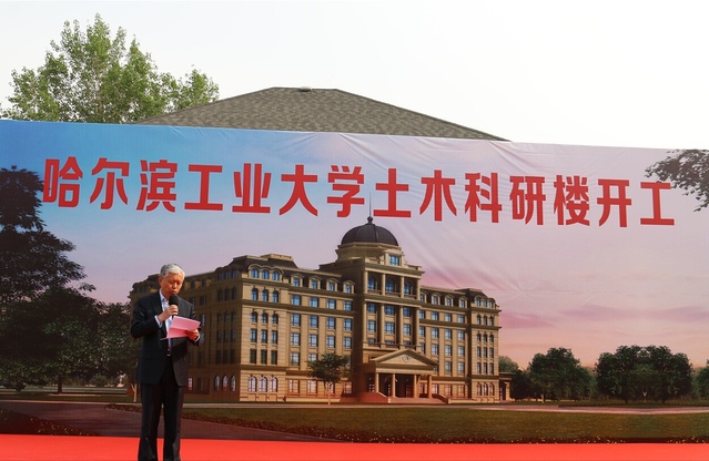 5月11日下午,伴随着满校园的丁香芬芳,哈工大二校区土木科研楼工地前热闹非凡、宾朋满座,一场别开生面、简洁而隆重的开工仪式正在这里举行。中国工程院院士沈世钊、哈工大校友总会副会长、哈工大原副校长景瑞教授、苏州科技大学原校长何若全教授等老领导,学校基建处何林处长、盖遵彬副处长、张德严副处长、总务处邢大伟处长、李飞宇副书记、刘克英主任、国资处毕远强处长、保卫处于力军处长、校友会卢长发主任、财务处李秀兰副处长,哈尔滨奥威斯房地产开发有限公司董事长吕红军、大连泛华集团董事长安玉杰、星河湾集团上海公司总经理孙小烈等杰出校友代表,以及工程建设相关单位代表参加了本次开工仪式。仪式由学院党委书记乔世军主持。