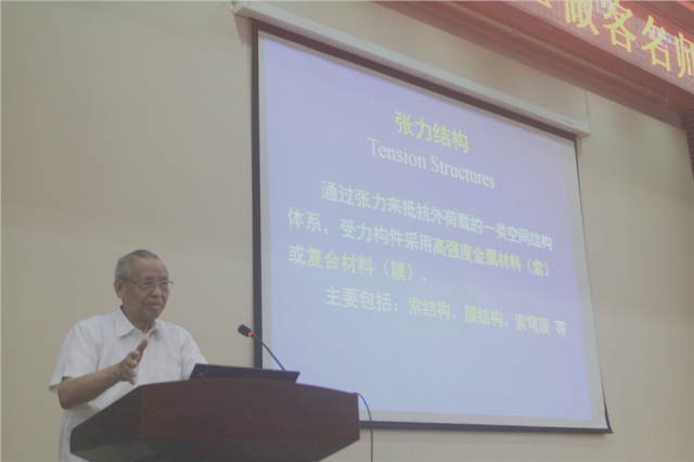 为增加土木专业顶尖名师与学生零距离接触的机会,使学生在与名师的交流中感受大师魅力,了解专业内涵,掌握行业动向,增强人文和创新精神培养,助力学生更好地进行生涯设计与未来职业规划,土木学院正式启动“名师有约”系列活动。首期嘉宾邀请到中国工程院院士沈世钊教授,6月14日下午在土木学院三楼报告厅为2017级全体本科生做了现代空间结构的专题讲座。