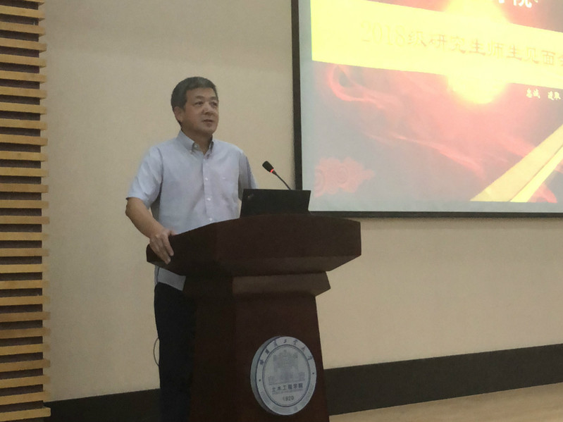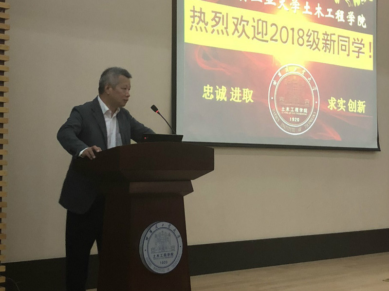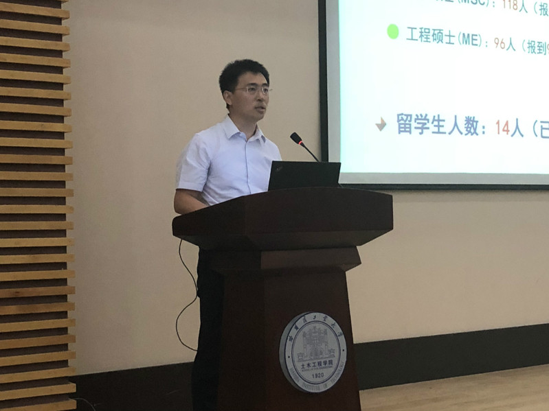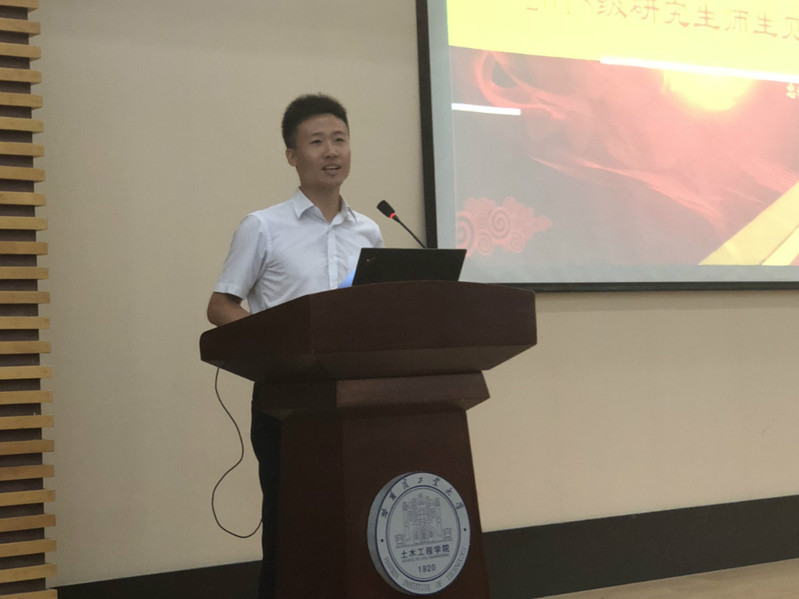 院长范峰代表学院致辞并介绍学院情况。范院长详细介绍了学院历史、学科概况、师资队伍、人才培养方式与目标、科学研究等方面的情况,让同学们对学院的整体情况有了直观的印象和感受。随后他嘱咐同学们要具有一个当代研究生应具备的家国情怀,应该对人生做好规划,在今后的抉择中发挥哈工大人的高远影响。他语重心长地寄语新同学,鼓励大家积极地配合导师,加强沟通交流。希望大家珍惜时间,不懈奋斗,努力成为栋梁之才,做有自信的当代研究生,做有自信的哈工大土木人。为国家的安居事业贡献力量。