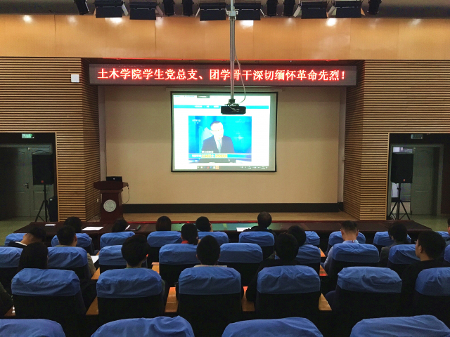 9月30日上午,土木学院学工办全体辅导员、学生党总支全体成员、主要团学组织负责同学在学院报告厅观看了“烈士纪念日”现场直播。