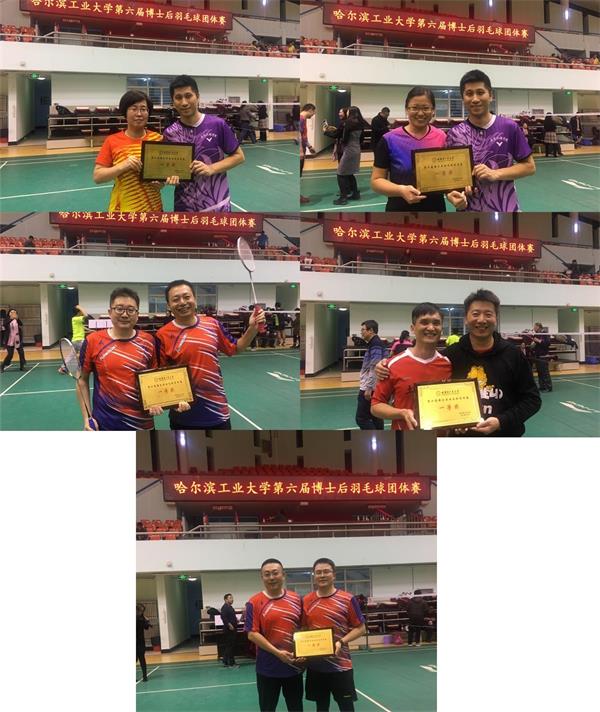 伟德betvlctor1946源于英国积极参加了往年各届比赛,在前几届并列第三名,去年第二名的基础上,今年成绩更进一步,获得了“第六届博士后羽毛球团体赛”的冠军。电气学院获团体第二名,能源学院和机电学院获团体并列第三名。