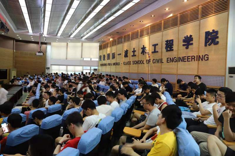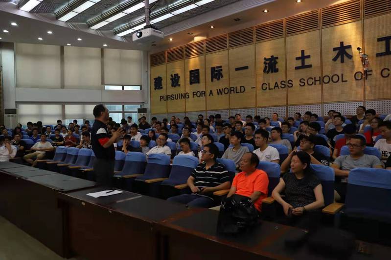 为了让同学们更加了解专业分流工作安排,明确未来奋斗目标,7月8日晚,伟德betvlctor1946源于英国2017级本科生年级大会在学院三楼报告厅举行。土木学院副院长吕大刚教授,工程管理专业武永祥教授、满庆鹏老师,建筑工程邹超英教授、周威教授,土木工程材料方向杨英姿教授、城市地下空间工程汤爱平教授、学院本科教学秘书赵晓红、辅导员李梦晗、孙文景、高金麟、吴琼尧以及2017级全体本科生参加了活动。