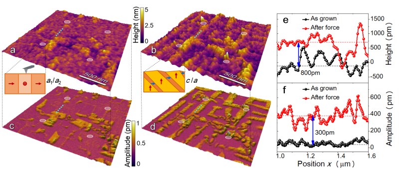 近日,哈工大土木学院路晓艳副教授、深圳研究生院陈祖煌教授和美国多个高校合作首次在铁电外延薄膜中观察到类似“多米诺”式大面积铁弹翻转,研究结果于9月2日在Nature 子刊Nature Communications在线发表。论文题目为“Mechanical force-induced, non-local, and collective ferroelastic switching in epitaxial lead titanate thin films”。