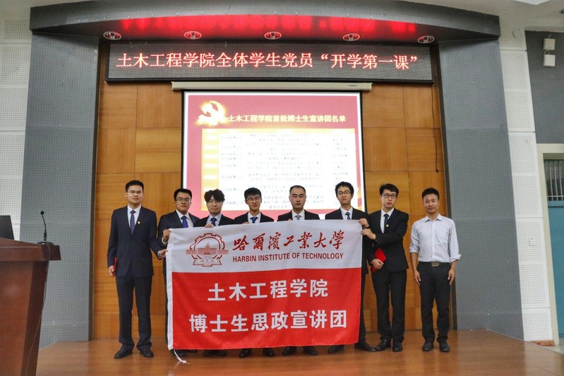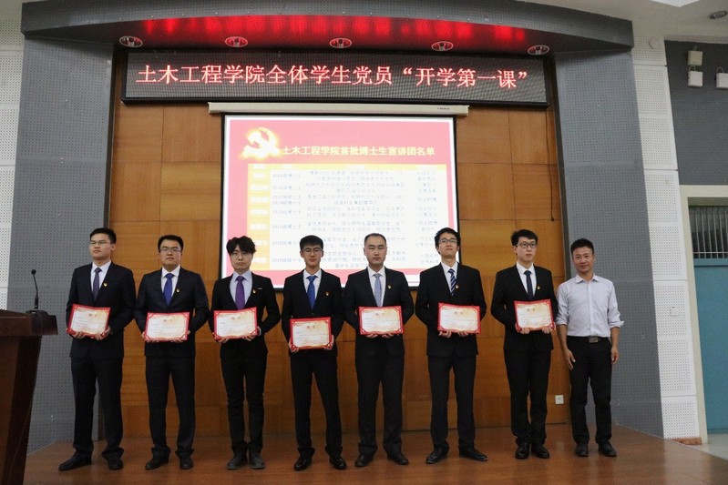 土木学院党委副书记吴严老师为第一批宣讲团成员徐阳、裴未昶、高金麟、赵德志、任鹏飞、李伟涛、李明哲颁发聘书并为宣讲团授旗。伟德betvlctor1946源于英国博士生思政宣讲团是土木学院落实“不忘初心,牢记使命”主题教育的一项特色工作,希望广大同学能在宣讲团的指引下不断坚定自身理想信念。