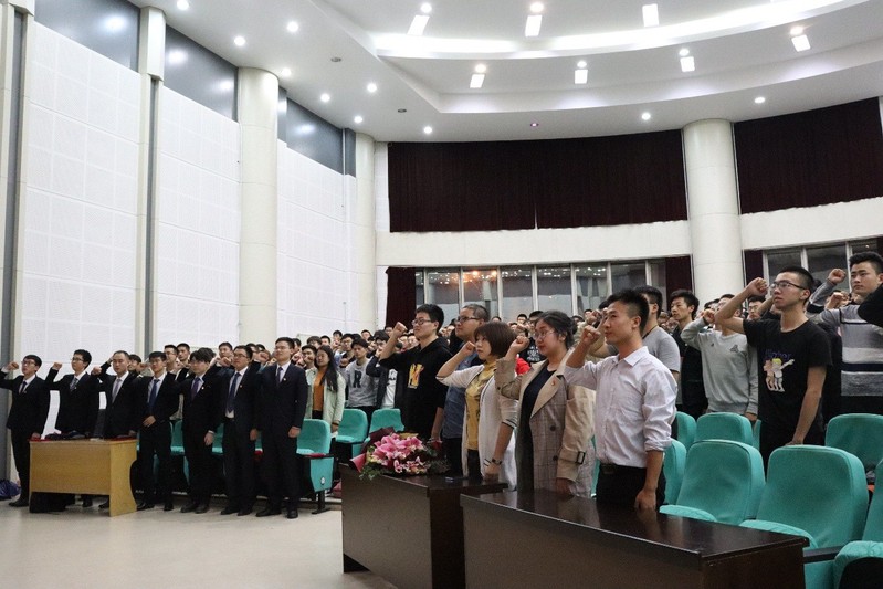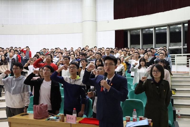 按照惯例,讲座的最后全体学生党员重温入党誓词,由院优秀共产党员、院研究生会主席,院2018级硕士研究生王极同学领誓。