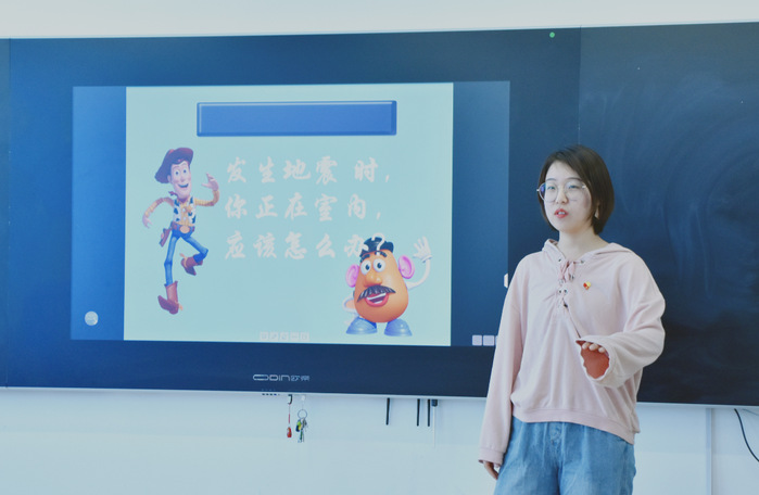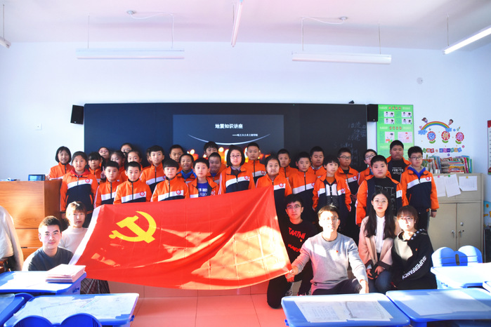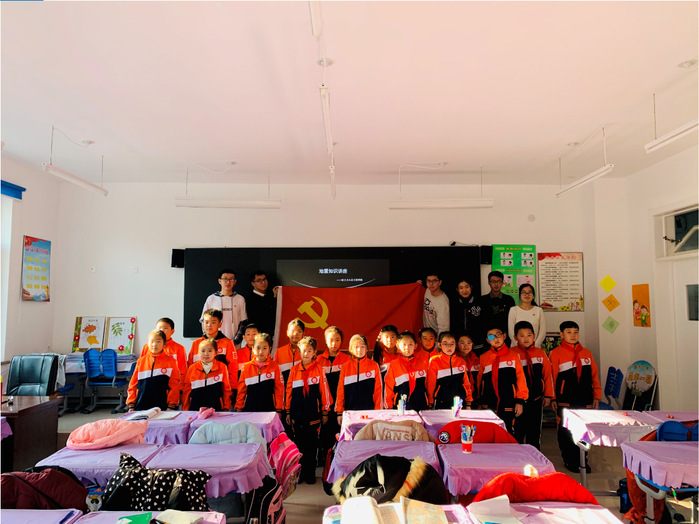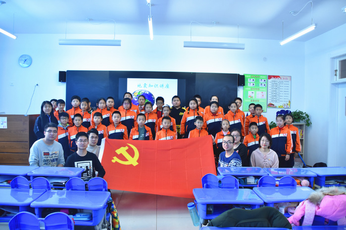 课堂地震知识宣讲主要包括:地震经历的分享、地震产生形成的简要介绍以及地震逃生的简单知识。支部党员首先进行了地震经历的分享进行开场,小朋友们积极发言分享自己的对地震的概念、地震的经历与感受,然后引导小朋友们不忘过去,并向地震救援英雄致敬。开场之后支部党员深入浅出地为小朋友们讲解有关地震的一些基本概念,包括地震的形成,震级分类与中国地震带得大致划分等等。并邀请小朋友上台面对地震则由党支部成员进行示范讲解当地震来临时,小朋友们应当如何应对突发情况,做好自我保护。