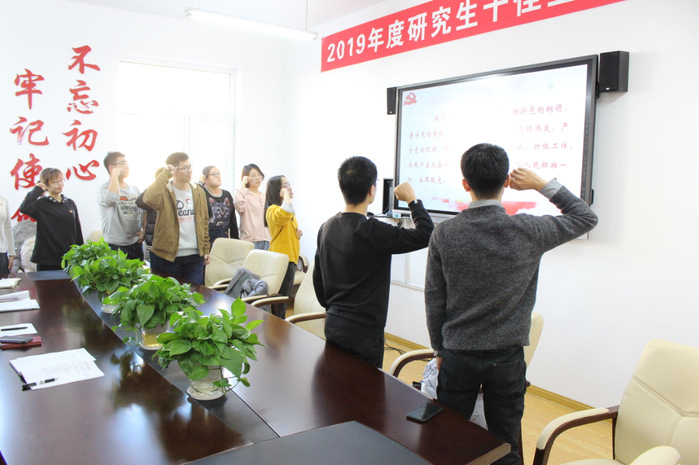 初心与使命畅谈之后是学习感悟与交流环节,刚结束地震知识宣讲的同学们结合授课感受与老师们进行了分享与交流。由晶同学讲到:“建文小学的学生在地震讲座中表现十分活跃,对知识充满好奇和渴望。自己也曾在2018年工大毕业后远赴广西进行过为期一年的支教教学活动,担任高中物理老师,深感作为老师这个职业的辛苦与不容易。正所谓师者,所以传道授业解惑也。老师,不只是简单的教书匠,还要教授学生为人处事的道理与主动学习得可贵品质。建文小学的教师们秉持着对教育事业认真负责的初心,将知识一点点的传授给这群朝气蓬勃的孩子们。教师们在自己的工作岗位上奉献着光和热,作为研究生的我们也要向老师们学习,努力提升自我,秉持初心,做好科研工作,为党和社会贡献一份力量。”最后全体参会成员重温入党誓词,右手握拳再一次重温自己入党时的初心与使命,也更加明确了自己的初心与使命!