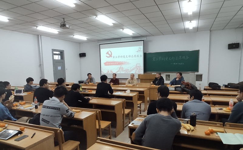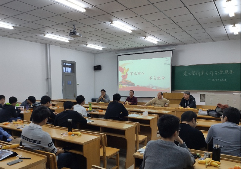 2019年12月12日下午土木工程学院岩土与地下工程党支部走进16级城市与地下空间工程专业,开展学科党支部党员志愿服务活动。齐加连、邱明国、徐鹏举、汤爱平及王世鑫五位支部党员教师参与了此次活动。