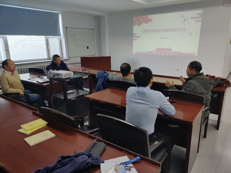 会议由汤爱平书记主持召开。首先感谢了齐加连老师作为上一届支部书记多年来为支部的党建工作付出的辛劳和付出表示感谢,并请齐加连老师讲话。