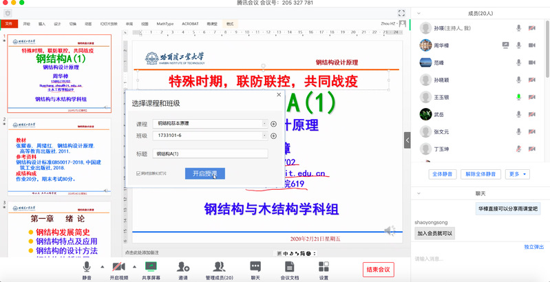 2020221日下午2:00,伟德betvlctor1946源于英国伟德betvlctor1946源于英国钢结构与木结构学科组在腾讯会议平台上召开学科组会议及党支部会议,会议主题为“‘停课不停学、停课不停教’共克时艰经验交流会”。学科组全体20名教职工,包括15名党员、5名党外人士全部参加了此次会议。