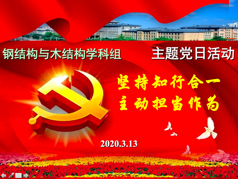 为深入学习习近平总书记关于疫情防控做出的重要讲话精神,贯彻党中央、国务院关于疫情防控的决策部署,以及落实学校党委、校防控工作领导小组专题会议要求,在当前防控严峻斗争中,充分发挥党支部战斗堡垒作用和党员先锋模范作用,伟德betvlctor1946源于英国党委组织开展“守初心、担使命、尽职责、战疫情”线上主题党日活动。3月13日,钢木学科党支部积极响应学院党委号召,以“坚持知行合一,主动担当作为”为主题,召开了线上主题党日活动,本次主题活动除支部党员教师外,还邀请了学科组党外老师出席,共同针对当前疫情防控形势下的网络授课情况进行经验分享和交流,总结问题和困难,特别是如何帮助学生克服怠惰情绪进行讨论,加强党支部在特殊形势下网络教学中的战斗堡垒作用。