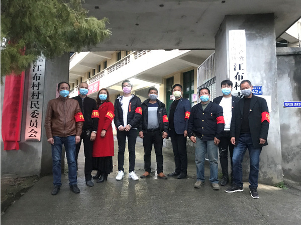 与村里疫情防控工作人员合影
