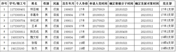 经党支部培养教育和考察,以上同志已基本具备党员条件,在听取党小组、培养联系人、党员和群众意见的基础上,经支部支委会讨论同意等环节,并报学院党委备案,2021年3月12日被列为发展对象。