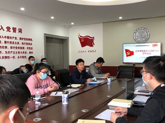 樊少勇带领全体支部书记一同学习了习近平总书记在党史学习教育动员大会上的重要讲话精神,对学校、学院党史学习教育和庆祝建党100周年系列活动方案进行了介绍,为各支部下发工作任务清单并逐一做了讲解,对党史学习和重点党建活动等工作做了强调和指导。