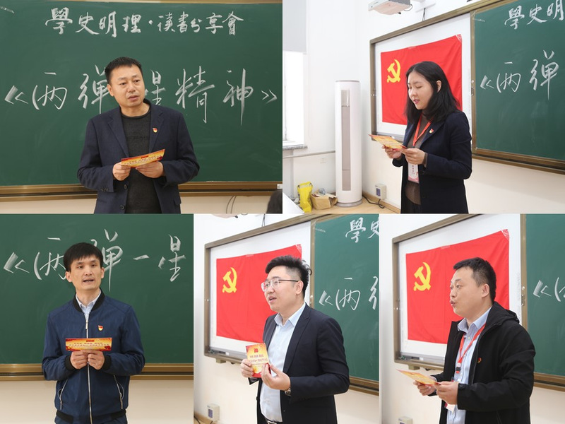 本次主题学习第一项内容为《“两弹一星”精神》党史故事读书会,读书会由孙瑛主持。在《“两弹一星”精神》读书会中,党员们分别讲述了于敏、孙家栋、钱学森、王淦昌等“两弹一星”元勋的党史故事,并分享了自己的感悟。高海港讲述了于敏先生的故事,表示老一辈科学家无私奉献的精神是值得我们终生学习的财富,我们更要以国家发展需求为导向开展工作,为中国建造贡献力量。乔世军分享了王淦昌先生的故事,表示老一辈科学家按照祖国的需要确定研究方向并取得成绩,这份报效祖国的决心和科研攻关的精神让我们感动,我们要像老一辈科学家学习,打造更多的国之重器。活动中其他成员也分别讲述了其他“两弹一星”元勋的党史故事,并结合中建一局发展历程、哈工大精神以及自身工作岗位特点分享了自己对《“两弹一星”精神》的学习感悟。