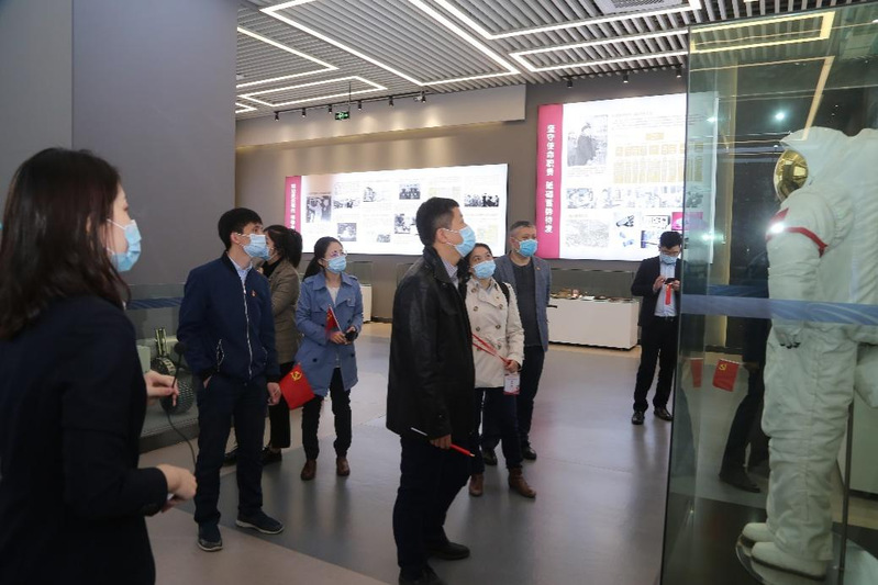 本次主题学习第三项内容为哈工大航天馆参观学习,通过现场党史学习教育,使党员们深入体会哈工大人“立足航天,服务国防,面向国民经济主战场”的使命与担当。党员们依次参观了东方红一号、神舟五号飞船、长征五号、FAST(500米口径球面射电望远镜)等各类模型,学习从“两弹一星”到“嫦娥探月”哈工大与中国航天的红色历史,进一步加强了本次主题学习的效果。