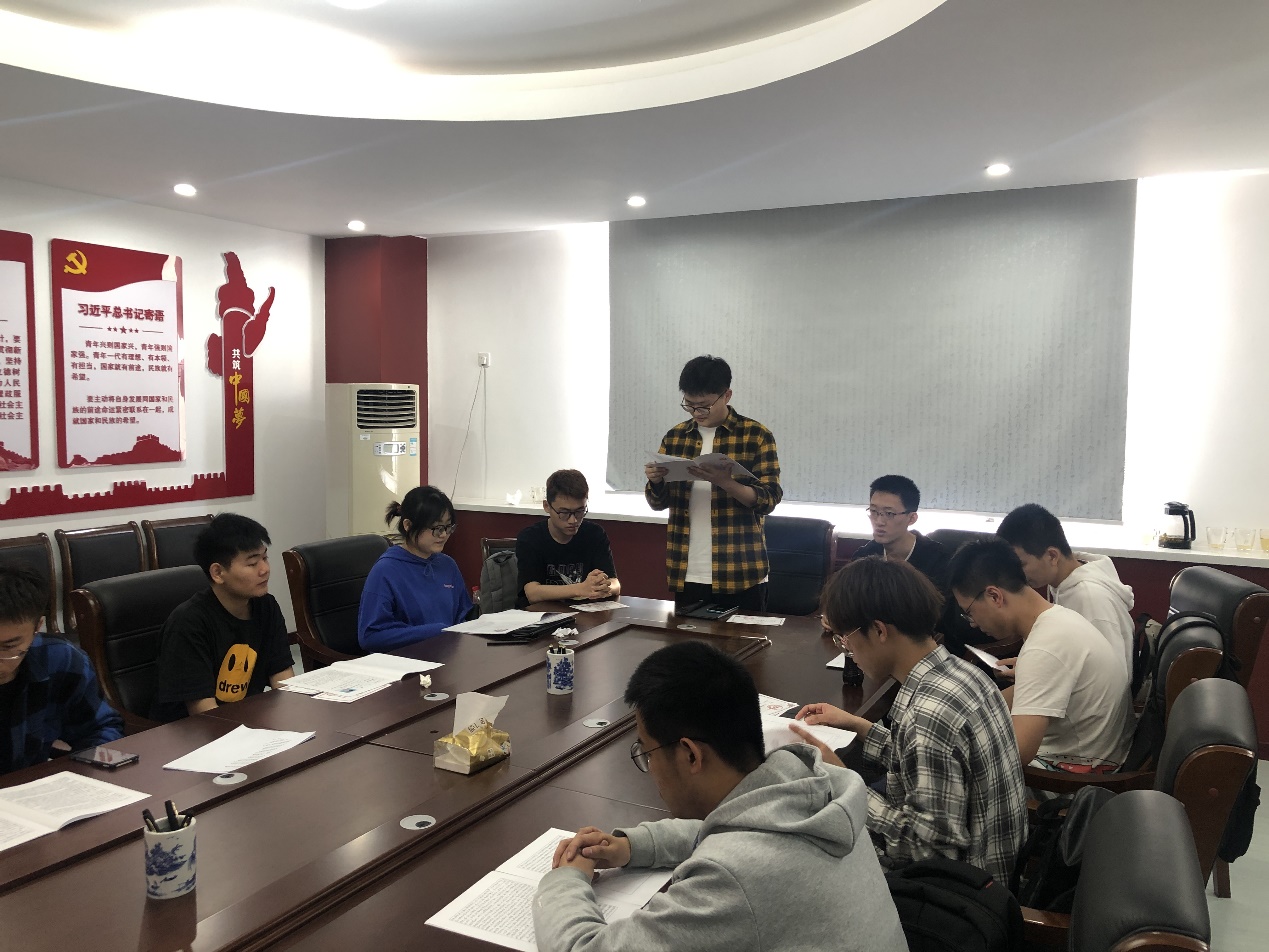 活动最后,全体党员面对党旗一起重温入党誓词,支部孙祥祖领誓,大家在铿锵有力的誓词中坚定了青年学子赤诚报国的信心与决心。