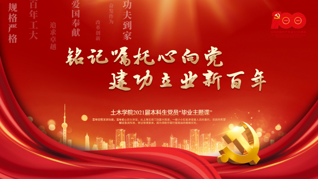 为深入开展党史学习教育和庆祝建党100周年系列活动,深入学习践行习近平总书记贺信精神,持续推进“两学一做”学习教育常态化制度化,按照学校党委组织部关于毕业生党员教育的通知要求,通过主题党课活动,引导毕业生党员传承红色基因,赓续百年哈工大精神和“规格严格、功夫到家”的校训传统,激励土木菁华党员学子奋发作为、追求卓越,爱国奋斗、建功立业,在实现“两个一百年”奋斗目标和中华民族伟大复兴的历史实践中贡献青春力量,土木学院面向2021届全体本科毕业生党员继续开展“毕业主题课”集体党课。现将相关事宜通知如下: