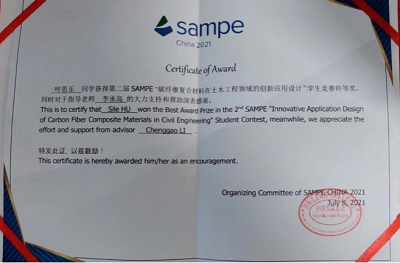 第二届SAMPE“碳纤维复合材料在土木工程领域的创新应用设计”学生竞赛于 2021 年 7月 6 日至 9 日 “SAMPE 中国 2021 年会”期间在北京举办。本届学生竞赛由 SAMPE 中国土木工程复合材料专业委员会主办,是土木工程领域的专业交流活动。大赛旨在普及和推动碳纤维复合材料在土木工程领域的创新性应用,基于碳纤维复合材料的高强、高耐腐蚀、可设计等性能,提出碳纤维复合材料在土木工程领域的创新性应用,并给出可靠的设计分析与说明。此外,竞赛也鼓励其他高性能纤维复合材料在土木工程领域的创新性发展与应用。竞赛为国内外高校土木工程、复合材料、力学等专业的参赛者提供了一个施展才华、拓宽视野的国际化舞台,“SAMPE 中国年会”鼓励参赛者们不拘泥于传统理念,开放思路,在“公开、公正、公平”前提下,发挥团队智慧,齐心协力将自己心目中的创意设计呈现给业界。