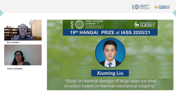 近日(8月23日-27日),由英国萨里大学主办的2021年国际薄壳与空间结构学术会议通过线上平台召开,并举行了国际薄壳与空间结构学会(IASS)第19届半谷奖(Hangai Prize)的颁奖仪式。我院沈世钊院士、武岳教授联合指导的博士生刘秀明同学荣获该奖项,并就其获奖论文作大会报告,报告题目为“Study on thermal damage of large-span ice shell structure based on thermal-mechanical coupling”。