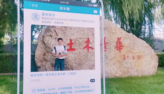 又一次以新的身份——博士研究生和哈工大土木学院见面了,在这里度过了自己的硕士阶段,两年的生活学习让我对“规格严格,功夫到家”的校训中包含的精神有了更加深刻的认识,也希望自己能够坚守初心,砥砺前行,力争做新时代的哈工大“八百壮士”。