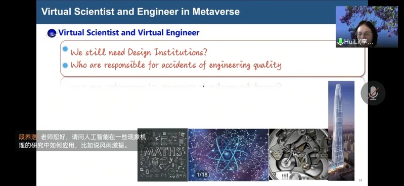 李惠教授以“AI For Civil Engineering——土木工程中的人工智能”为主题主讲报告,李惠教授指出了在大数据时代利用人工智能挖掘数据特征的必要性,带领同学们了解了人工智能的工作原理。李惠教授在讲座中将同学们的视野由土木工程延展到大土木工程,并从土木工程全寿命过程出发,以国内外最新研究为例,展现了各阶段人工智能如何与土木工程结合。李惠教授同时也指出人工智能与土木工程结合是时代发展的趋势,她从城市智能规划、土木智能设计(包括筑艺术智能设计、建筑布局智能设计、建筑结构智能设计)、智能建造、抗风抗震设计、智能运维方向,全方位展现了当下人工智能与土木工程结合深度和广度,以及大数据时代土木工程和人工智能相结合带来的经济性和便利性。新颖的研究方向、高涨的研究热情、尚待解决的奇妙问题引发了同学们的思考,开阔了同学们的视野,让同学们感知了智慧土木学科的未来发展。李惠教授从社会发展的角度,指出在当今信息时代、大数据时代,追求科技与创新,人工智能和土木工程结合是未来发展的趋势,并讲述了目前国内外高校开展的相关研究。