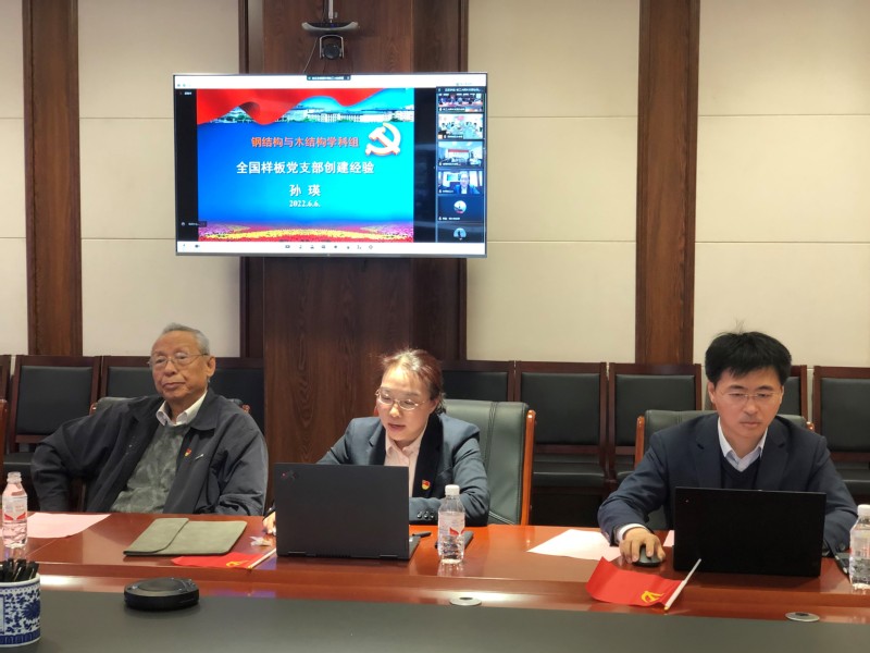 在第三项活动中,钢结构与木结构学科组党支部书记孙瑛为大家分享全国党建“双创”样板支部经验。党支部通过“大师+团队”的建设模式、创新三种方法激发“+支部”活力,推进党建与业务深度融合。创新三种方法包括探索了支部对接共建模式、建强了党建沉浸示范平台以及打造了精神赓续传承的“铸魂”宣讲阵地,以此推进了党建示范创建和质量创优工作重点任务落地落实、开花结果,有效推动党建工作与中心任务双向深度融合,持续以高质量党建工作引领事业蓬勃发展。