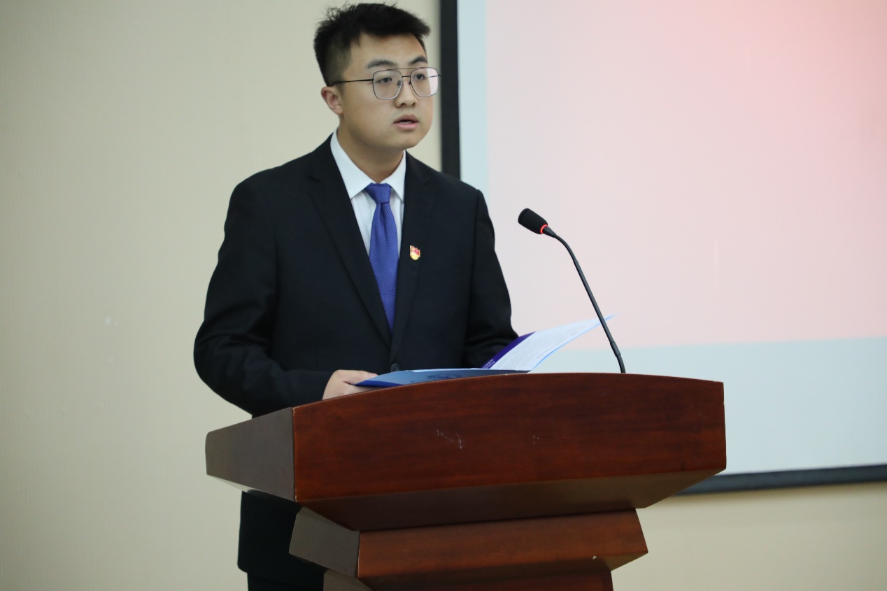 优秀党务工作者代表、2020级本博联合党支部书记、学生党员铸魂工作室负责人靳英健发言