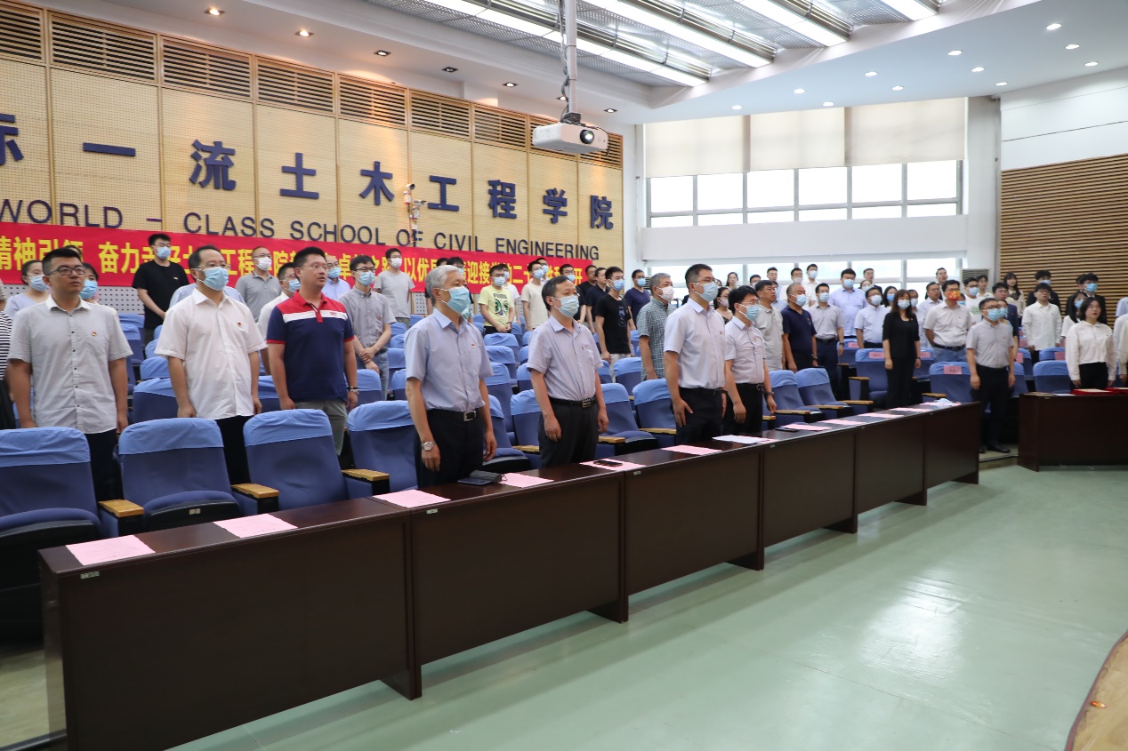 陈文礼结合学院工作实际,对全院各党支部和全体师生党员提出三点要求。一是旗帜鲜明把党的政治建设摆在首位,坚定不移听党话跟党走。要深刻感悟百年土木许党报国的红色历史底蕴、学科文化和精神传承,持续深入学习践行习近平总书记贺信精神和哈工大“八百壮士”精神,打牢“听党话、跟党走”的红色烙印。二是持续深化“铸魂菁华”党委工作品牌,久久为功推动党建工作提质增效。要深入推进高校党建工作重点任务落实,以学院两个全国样板支部“高峰”为示范,推动学院党建工作的“高原”建设。三是推进党建与中心工作双向深度融合,引领学院事业高质量内涵式发展。要注重结合学科特色大胆创新和尝试,推动支部党建工作和教学科研等工作深度融合,确保中心工作开展到哪里、党组织就覆盖到哪里、战斗堡垒作用就发挥到哪里。