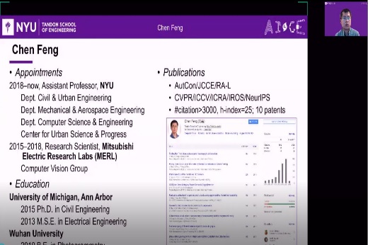 冯晨博士是纽约大学土木与机械工程系以及计算机科学系助理教授。他带领的实验室AI force旨在通过机器人视觉以及机器学习推进工程领域的跨学科研究。在加入纽约大学之前,冯晨博士曾就职于位于波士顿的三菱电气研究实验室,担任研究员,主要研究领域为在自动驾驶汽车以及机器人中应用的定位、地图以及深度学习技术。冯晨教授本科毕业于武汉大学测绘工程专业,获美国密西根大学电气工程硕士以及土木工程博士学位。