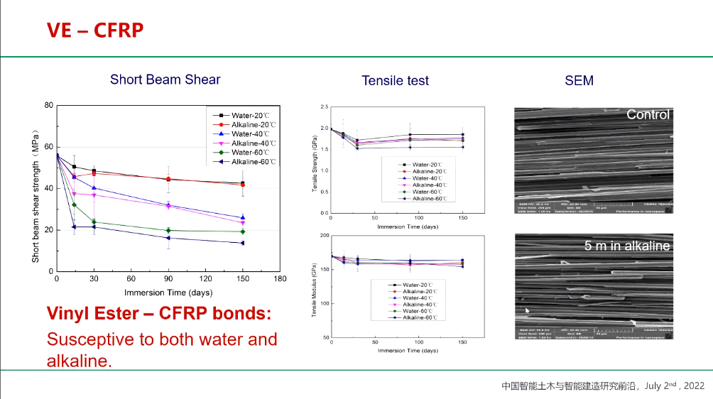 首先咸贵军教授简单介绍了复合材料的概念,通过对不同纤维的特点与优势进简单的对照,指出复合材料性能的优势。随后介绍了复合材料在不同情况中的应用及优势,包括海洋条件下桥梁、新型结构等。并针对不同情况下纤维复合材料耐久性等性能的测试及实验数据,并得出界面是影响纤维复合材料和纤维复合材料 -钢/混凝土结构长期使用性能的关键因素。基于此对纤维复合材料的使用方法:设计、安装、监控等进行了详细的介绍。最后,咸贵军教提出新型高性能纤维复合材料的研究有着巨大的机遇。