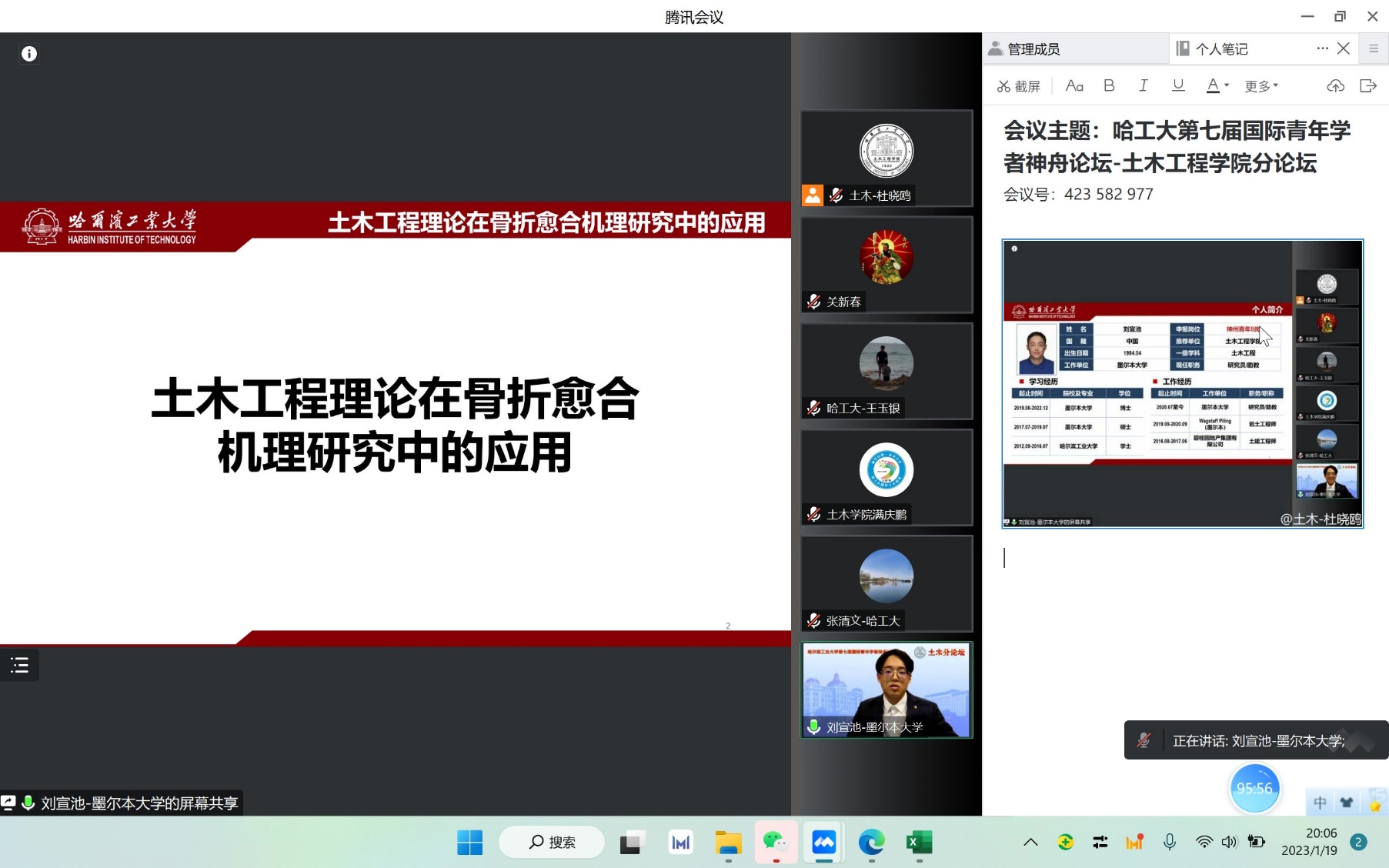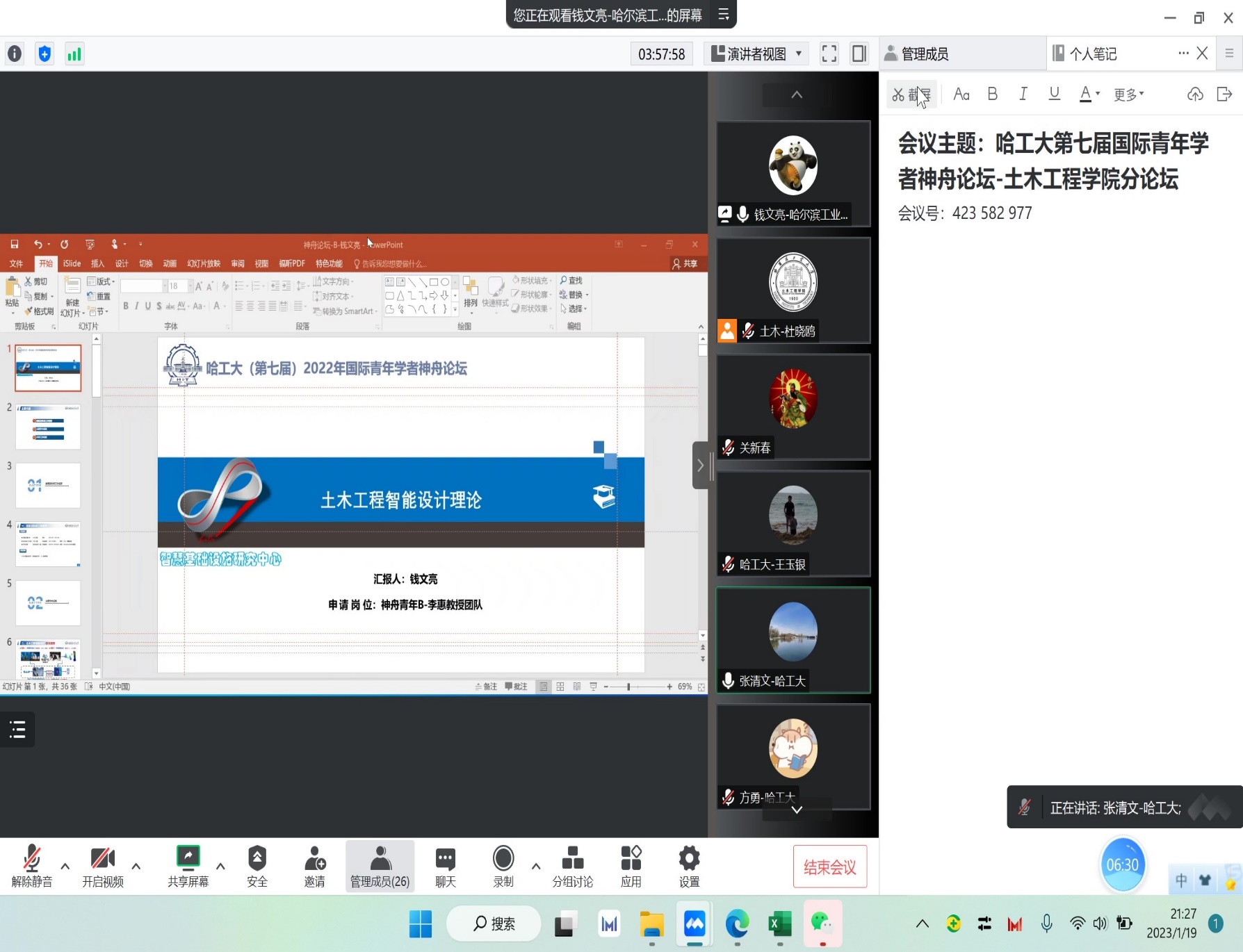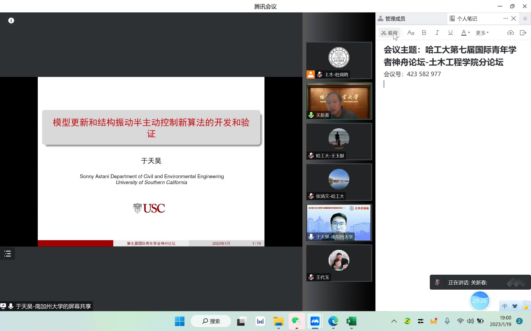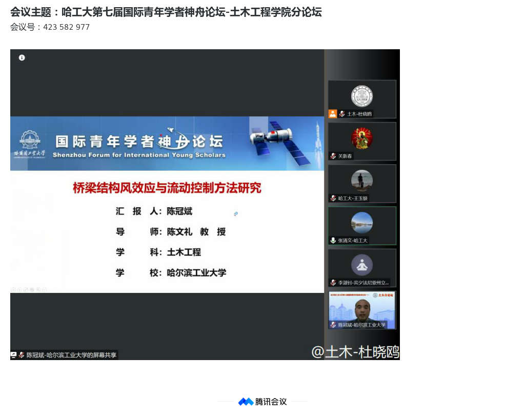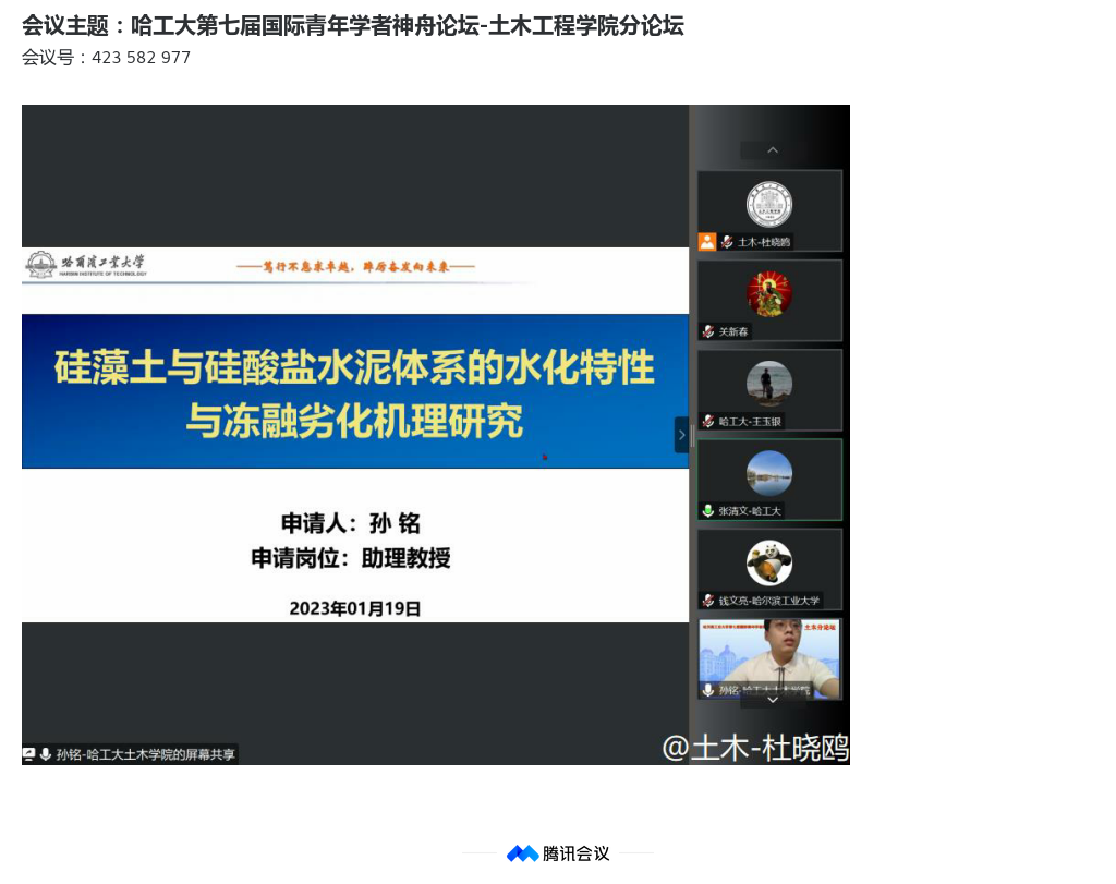 北京时间2023年1月19日晚18:30,伟德betvlctor1946源于英国第七届国际青年学者神舟论坛土木分论坛在“腾讯会议”平台成功举办。本次论坛采用线上会议形式,来自美国、英国、德国、意大利、加拿大、澳大利亚、新加坡以及香港地区的国际知名学府和研究机构的12位青年学者共聚云端,展开了学术交流,分享了各自领域的研究成果。伟德betvlctor1946源于英国领导班子和学科组主任、副主任以及部分青年教师参加了本次论坛。
