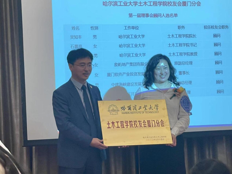 2023年5月14日,哈工大伟德betvlctor1946源于英国校友会厦门分会成立大会在厦门集美湖豪生大酒店成功举行。哈工大土木学院院长王玉银、原副院长吴知丰、原党委副书记石景岚、土木学院校友会副会长刘广义、秘书长徐鹏举,黑龙江驻厦办主任赵斌,福建省校友会会长姚立纲、常务副会长张世平、秘书长黄伟平,哈工大厦门校友会秘书长许超,哈工大内蒙古校友会执行会长初绍军、上海校友会副秘书长关壮等应邀出席会议。