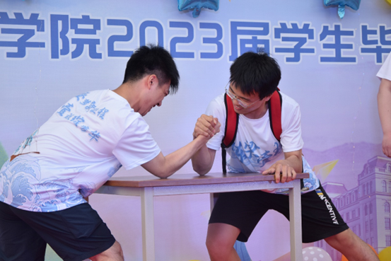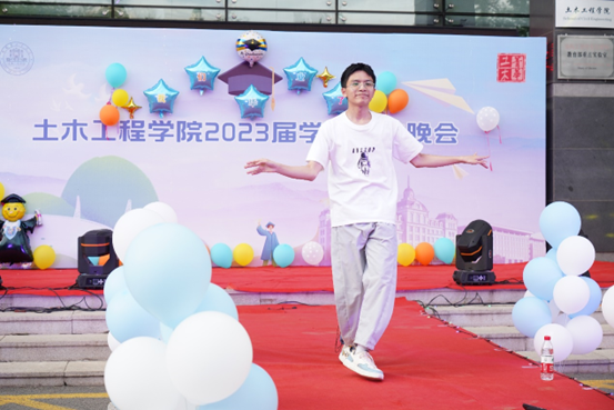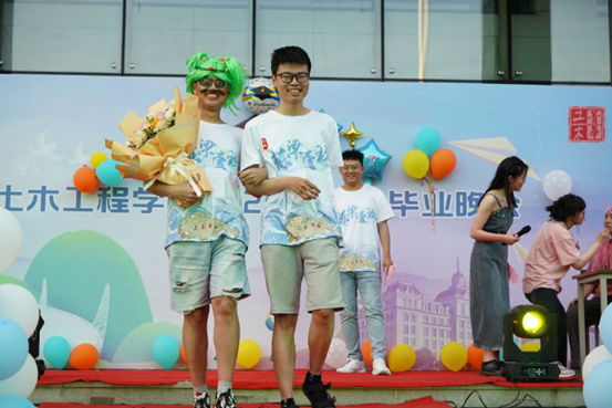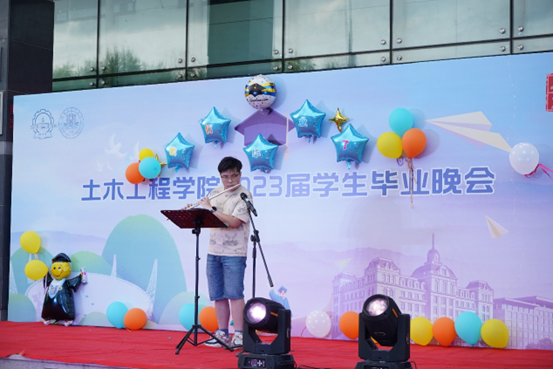 晚会部分,同学们各显身手,大方展示自己。一段开场舞《极乐净土》点燃全场气氛,引爆了观众们的热情,毕业晚会就此拉开序幕。由学院铸魂合唱团带来改编歌曲《丁香花开的路口》,丁香花开的同时,也弥漫着别离的伤感;后勤浴池的杨大爷陪伴了同学们四年,他带来了一首《父亲的草原,母亲的河》,深情的歌声中包含着对毕业生们浓浓的祝福;施晨烨同学带来的歌曲《心似烟火》,表达了对未来的期望;陈发霓同学带来长笛独奏《巴赫无伴奏长笛组曲》,展示了他高超的演奏技巧;李钊远同学带来的《雾里》,怀念当初的同学情;何宇雄同学带来歌曲《I really want to stay at your house》,传达了道不尽的离别感情;李佳赞同学带来三首歌曲联唱《江湖流、山岚、重庆魂》,颇具江湖气的说唱,让晚会的气氛再一次到达高潮;郑琰、王澍为我们带来的合唱歌曲《花海》表达了离别的不舍;晚会最后刘秀和同学们合唱《送别》,为毕业生们送行。精彩纷呈的节目中间,还穿插了一些互动小游戏,同学们积极参与,现场气氛热烈,欢声笑语不断。