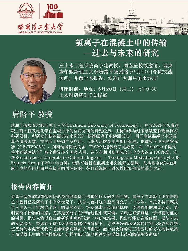 瑞典查尔默斯理工大学唐路平教授讲学通知