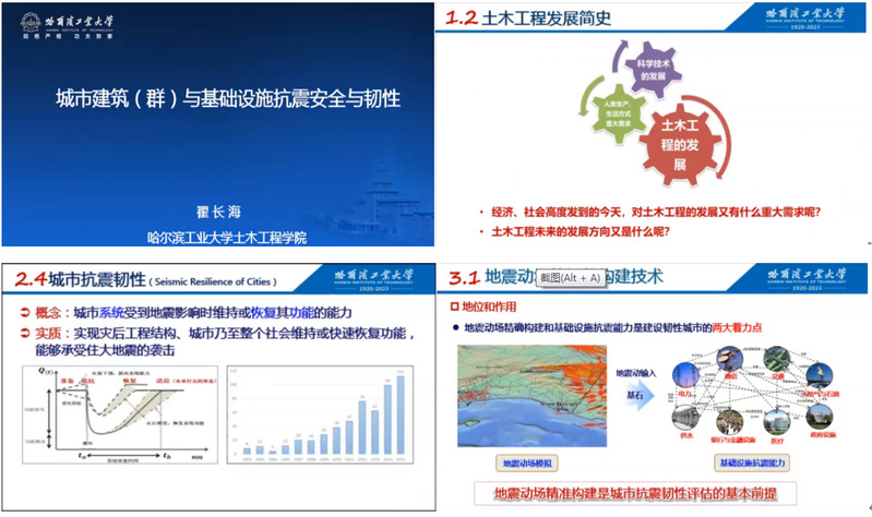 翟长海老师从土木工程的发展讲起,引出结构安全与韧性概念,强调城市空间是一个有机整体,需要更有效地规划。并介绍了智慧城市中人工智能的应用,以及相关可参考的规范。翟老师进而在讲座中分析了发生在中国本土的几次大型地震,强调了分级抗震设防的要求,以及医院等重要场所需要有较高的建筑重要性级别;讨论了城市空间的系统规划需要考虑的各种灾害风险因素问题。此外,翟老师还介绍了采用韧性设计原则提高建筑物和基础设施的应急响应和恢复能力的方法。尤其是需要合理考虑供水系统、电力网络、交通运输和通信网络等关键基础设施的强化和冗余设计,以确保其在灾害发生时仍能正常运行。