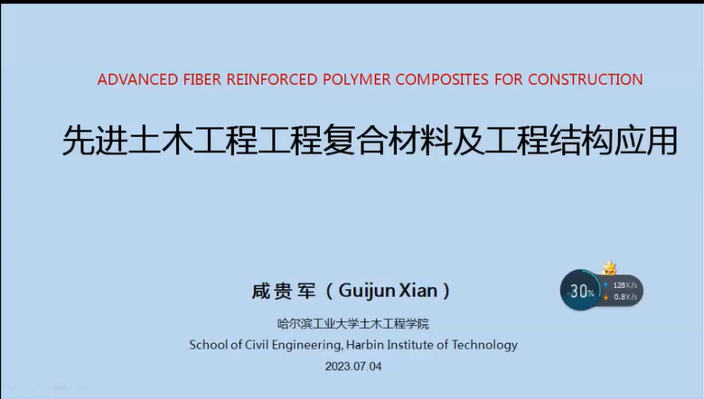 (柳露萌 文/图)7月4日上午,“智能土木与智能建造”国际暑期学校第九讲,由哈工大伟德betvlctor1946源于英国咸贵军教授讲授的主题为先进土木工程工程复合材料及工程结构应用,本讲课程助教为土木学院研究生唐清龙。