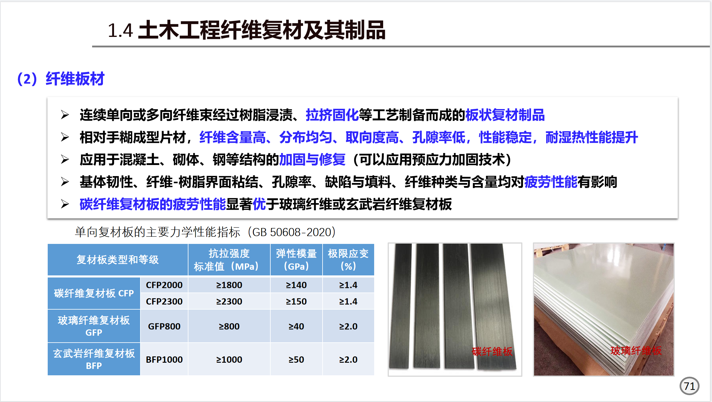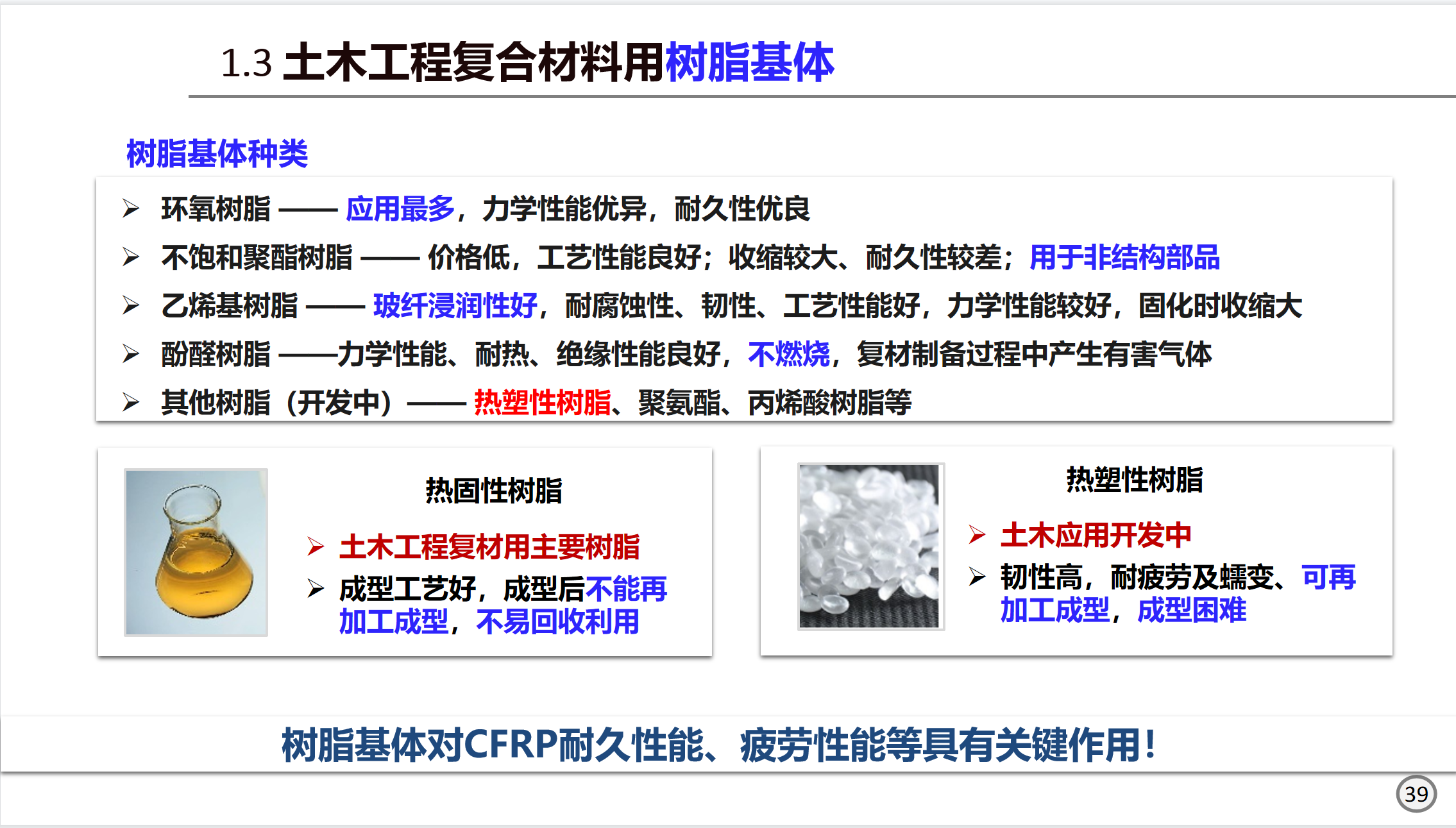 讲座的主要内容包括高分子纤维的分类、制备及其特点,高分子树脂基的特点,以及由以上两部分组合而成的复合材料在工程上的应用。咸贵军教授首先从纤维复合材料在生活中的应用例子讲起,并介绍了纤维复合材料的常用分类方法,即以所用的纤维材料为依据分类,分别讨论了不同类型材料的物理性能特点。随后,咸贵军教授介绍了树脂基及其混合而成的纤维复合材料。最后列举了一系列纤维复合材料在土木工程领域的实际应用案例,如片材、板材、型材、筋、索等,并在其间穿插讲述了相关的发展历史。