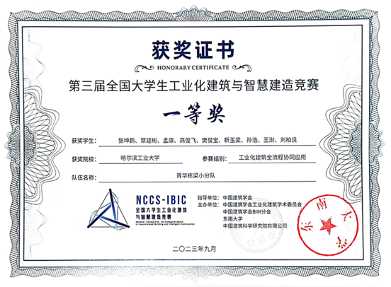 近期,第三届全国大学生工业化建筑与智慧建造竞赛的决赛在东南大学举办,我校首次参赛,由我院智慧基础设施学科组黄永教授带队的“菁华栋梁小分队”获一等奖,同时我校获优秀组织奖。