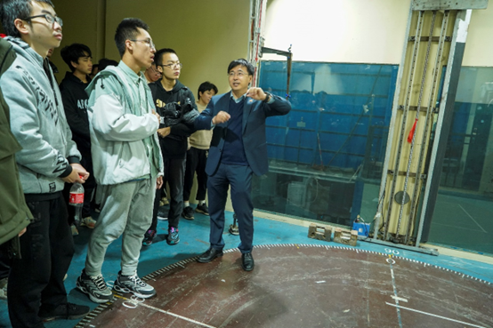 同学们来到哈工大大气边界层风洞与浪槽联合实验室,迎来了一场真正的“风的考验”。实验室拥有国内最大尺寸级别的大气边界层风洞、唯一可进行风浪联合模拟的浪槽以及可实现深海条件模拟的深井系统,具备可实现风雨联合模拟的降雨系统。依托该平台,我校科研人员在重大工程结构的风致动力灾变行为与抗风设计理论、海洋工程结构、近海风能开发与利用等领域开展研究。在参观实验室时,同学们表现出了极大的兴趣,遇到感兴趣的地方都积极地询问老师。王玉银引导同学们近距离接触风洞设备,不少同学感受到了风洞浪槽实验室研究的奇妙之处,对土木工程的发展有了新的认识。通过观察和实践,同学们亲身感受到科学研究的精确性和严谨性。