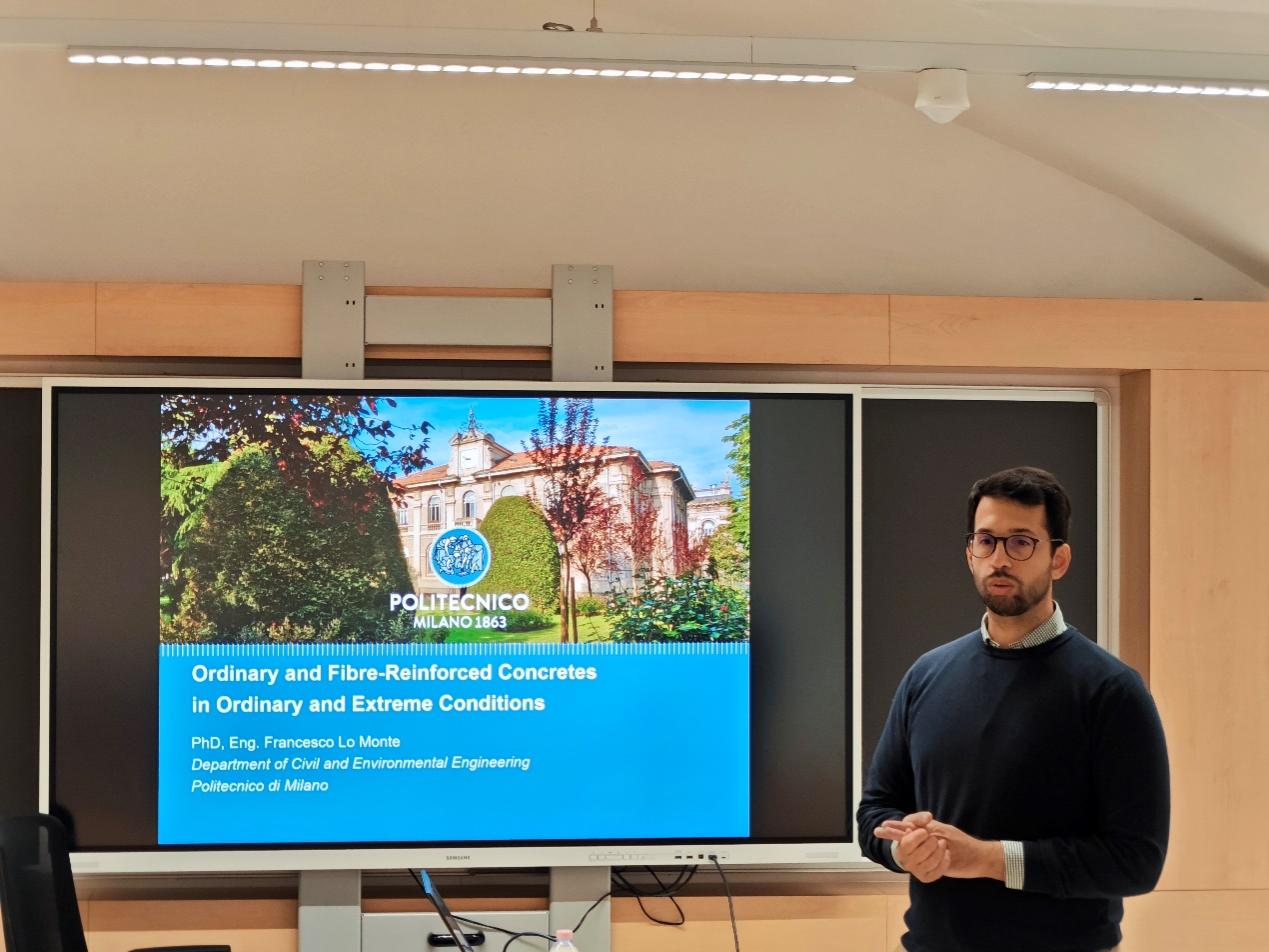 访问期间,我校耿悦教授、张欢副教授和贾晨助理研究员分别针对钢管混凝土拱稳定问题、再生混凝土组合结构进展、钢-混凝土组合结构柱腐蚀后性能等研究方向,米兰理工大学Lo Monte教授、Masoero教授分别针对纤维混凝土、混凝土微观结构等研究方向分别作专题报告,并与参会师生进行了充分探讨,讨论氛围激烈,学术气息浓郁。专题报告环节由米兰理工大学Giovanni 教授主持。