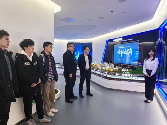 实践团一行参观了中建一局企业展厅“专业·可信赖”数字空间,在讲解员生动的讲解中,了解中建一局发展历程,在诸多等比例工程模型中了解项目背后的故事和意义,在3D空间中观看土建行业的尖端技术。