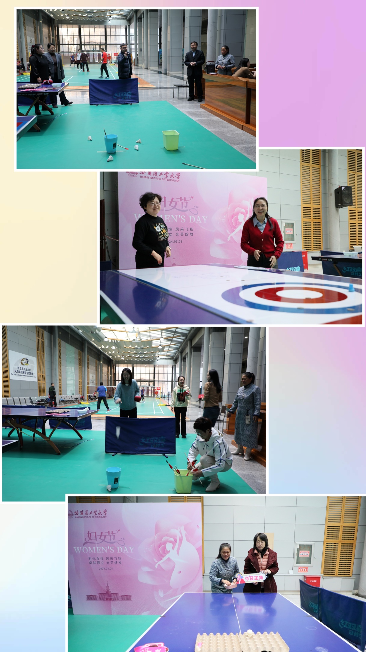 活动中“百步穿杨“、“弹无虚发“、“壶中求胜”等游戏环节,女教工们各显身手,展现出土木学院新时代女职工锐意进取、蓬勃向上的巾帼风采。