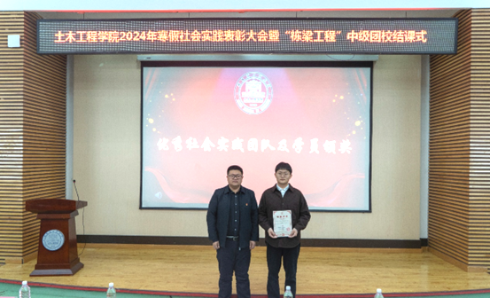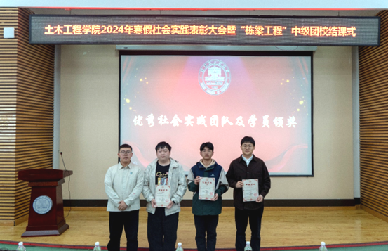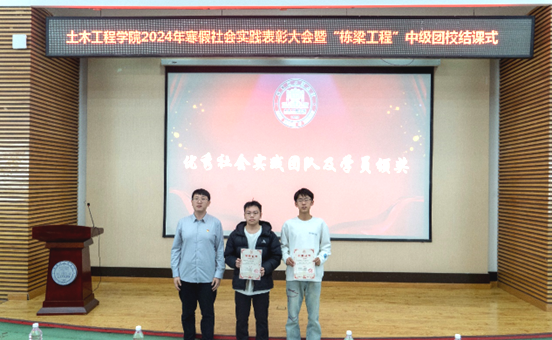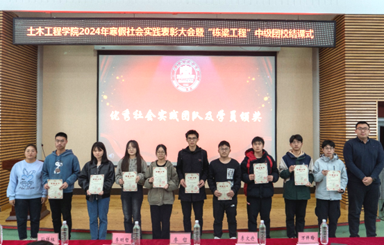 李明哲宣读社会实践表彰决定,获奖情况如下:一等奖“老工业新脉动·大庆振兴实践团”;二等奖“新媒体中心文化传承团”“土木探索者小分队”;三等奖“龙江冰雪缘团队”“红色铸魂·强基逐梦宣讲团”“地震知识宣讲团”。其余寒假社会实践队伍获得优秀奖。