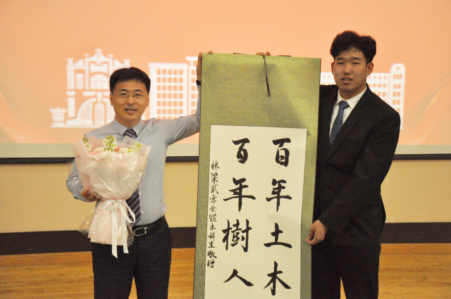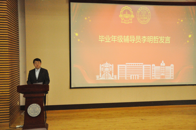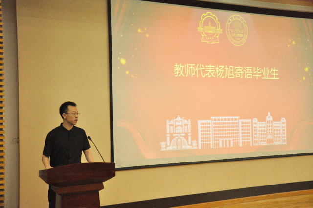 教师代表杨旭借用弗朗西斯·培根的一句“凡有所学,皆成性格”寄语毕业生,希望同学们在面对未来该何去何从的时候,应当静下心来仔细想一想,自己在走一条怎么样的路,去往何方,不用迷茫,也不用害怕,因为学校、学院和老师们永远是同学们坚实的后盾。最后,杨旭老师希望毕生们无论将来从事怎样的行业,都要牢记自己的母校和牢记自己工大校友的身份,牢记学校和学院的热切期盼,在各自的行业中持续发光发热,为学校、学院的声誉和佳绩继续添砖加瓦!